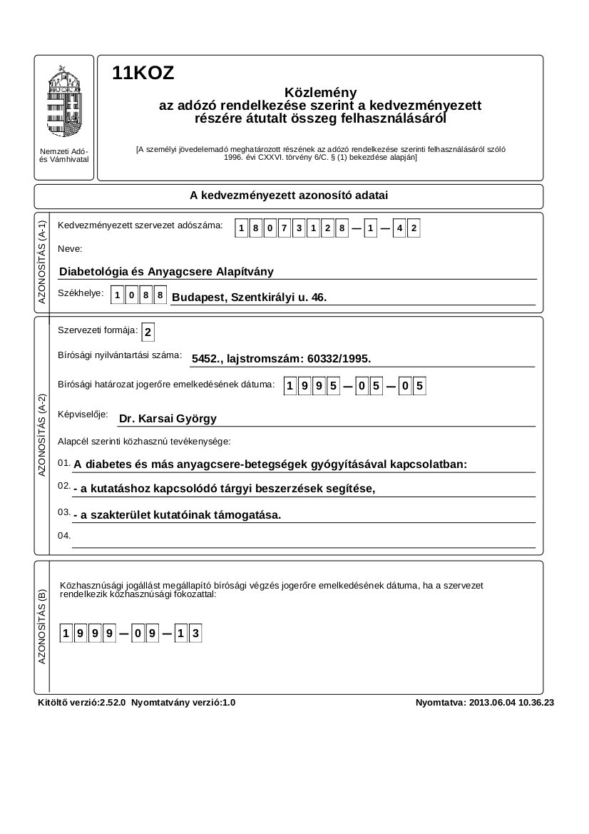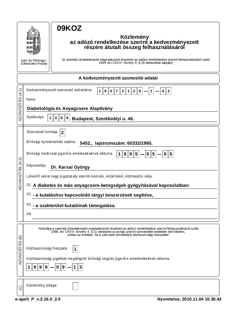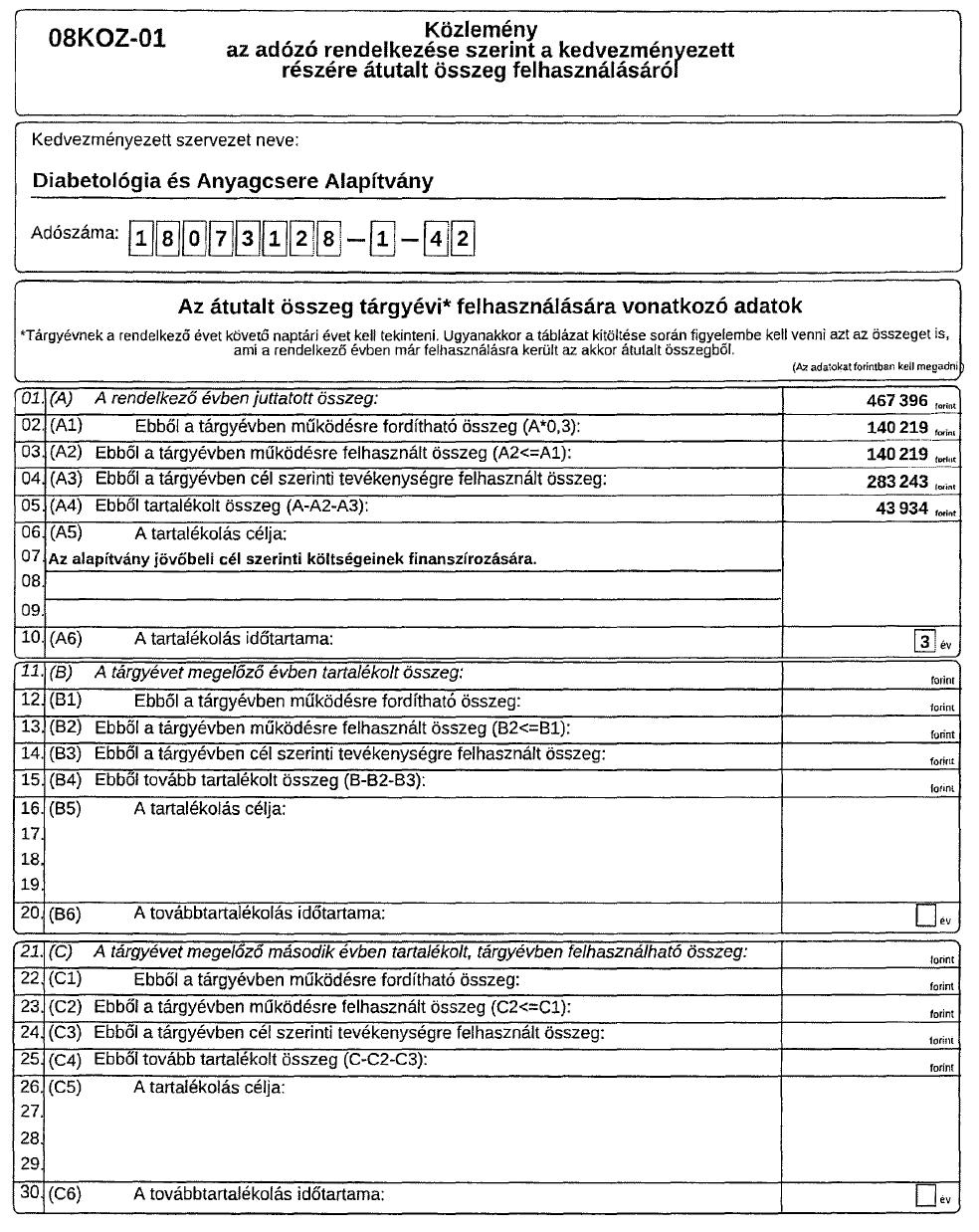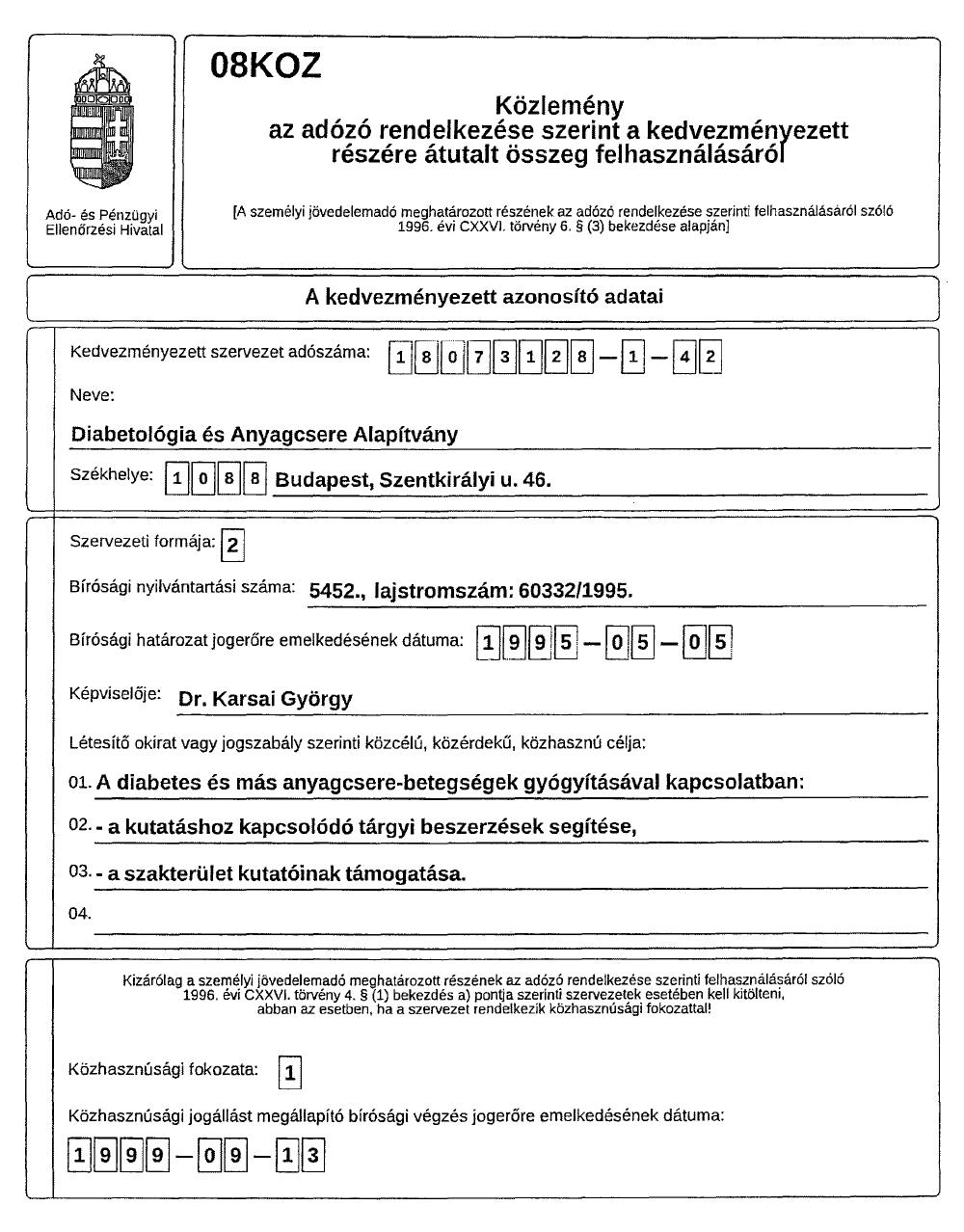 1. Elnevezés: Diabetológia és Anyagcsere Alapítvány